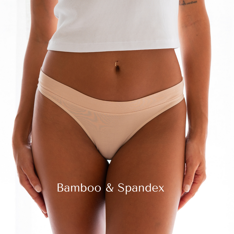 - Bamboo and Spandex Blend: The Everyday thong is crafted using a blend of bamboo and spandex materials (94% bamboo and 6% spandex). Bamboo offers breathability and health benefits, while spandex ensures stretch and comfort, allowing for a perfect fit.