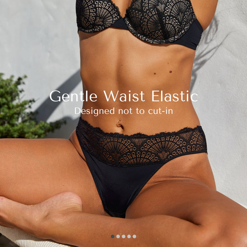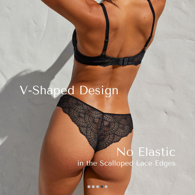 • Scalloped Lace Framing: With no elastic framing your bottom, the scalloped lace creates a smooth and gentle curve for ultimate comfort and a flattering look.